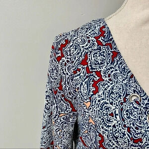 Laundry by Shelli Segal Burgundy Navy Print Blouse XS | Lace-Up Fall Top