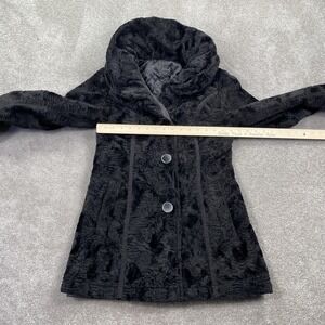 Laundry by Shelli Segal Coat Womens Medium Black Faux Fur Textured Button Jacket