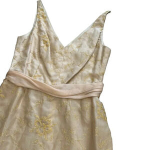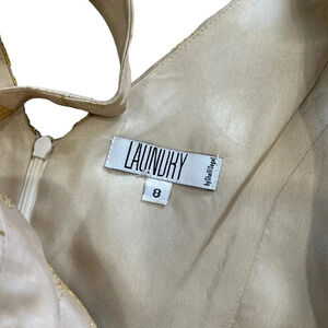 Laundry by Shelli Segal Cream Gold Stitching Silk Cocktail Dress 8