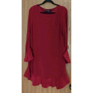 Laundry by Shelli Segal Dark Red Size 8 Ruffle Sleeve and Hem Shift Dress New