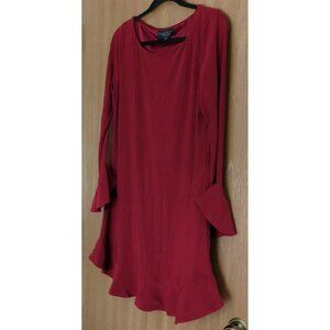 Laundry by Shelli Segal Dark Red Size 8 Ruffle Sleeve and Hem Shift Dress New With Tags but some damage to the tags themselves.