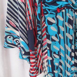 Great preloved condition - Women's Laundry by Shelli Segal Dress - Size 0. Polyester/spandex. Lined dress with flutter style sleeves, deep cross-over v neckline, side zip closure.