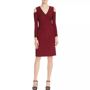 Show stopping dress with hidden zipper at side and faux leather accents. Fully lined