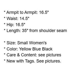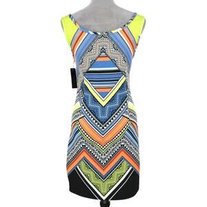 Laundry by Shelli Segal Dress Women's Small Blue Yellow Tank Neoprene Scuba Stretch New
