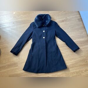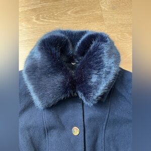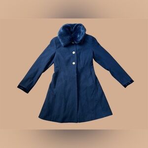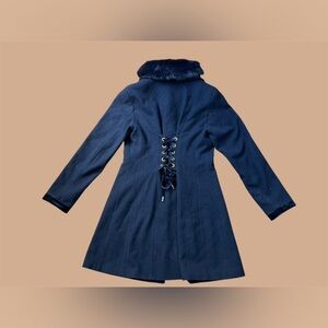 Laundry by Shelli Segal, Faux Fur Collar Lace-Up Back Coat, Navy blue color