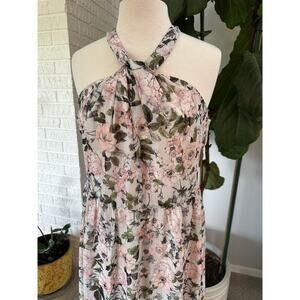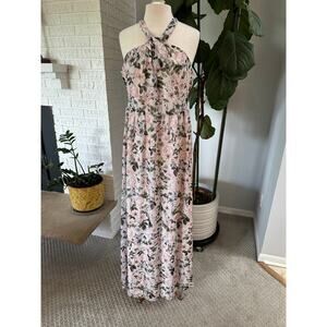 Laundry by Shelli Segal, floral maxi dress, halter evening gown, blush pink dress, wedding guest outfit, garden party dress, cocktail attire, formal wear, size 16, NWT, Nordstrom Rack find