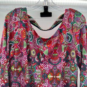 Laundry by Shelli Segal Floral Shift Dress 3/4 Sleeve Cut Out Back Size Large