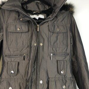 Laundry by Shelli Segal Long Jacket with fur hood Size XS