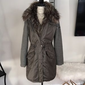 Laundry by Shelli Segal Fur Trimmed Hooded Anorak Coat Jacket | Medium | EUC