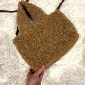 Laundry by Shelli Segal Fuzzy tan brown Sherpa Tote Purse Cross Body Bag