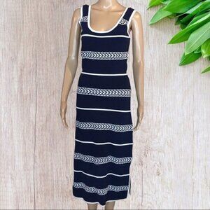 Laundry by Shelli Segal Geometric Stripe Sleeveless Side Slit Midi Dress Blue XS