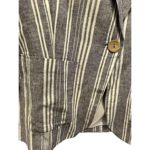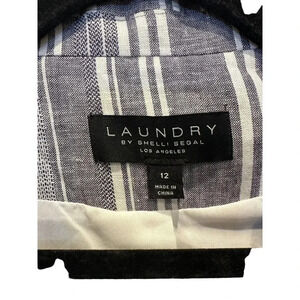 Laundry by Shelli Segal Gray & White Stripe Scrunched Sleeve Linen Blend Blazer