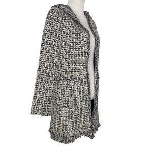 Laundry by Shelli Segal Hooded Boucle Jacket Size Small Fringed Hem Edges Cuff
