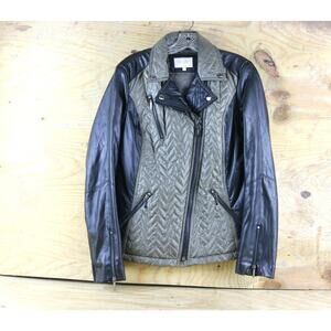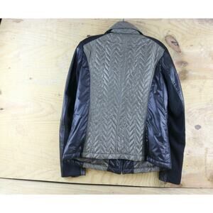 Laundry by Shelli Segal Jacket Womens Sz L Green Black Quilted Faux Leather Moto