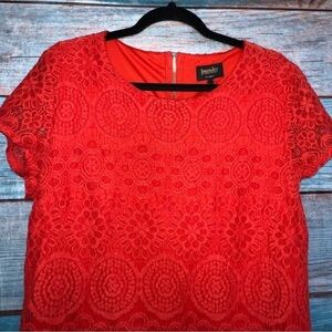Laundry by Shelli Segal lace dress. Size 12. Red. Lined. Sheer overlay. Cap sleeves.Shift style. Y2K vibes. Scalloped hem. Dressy. Classy. Stretch material. Floral. Zipper back. Mini length. Preloved. Please see all photos for condition. Fits many different aesthetics & occasions.