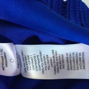 Beautiful lace detail in a mix of patterns frames the face, sheer sleeves add alluring dimension and the vibrant cobalt blue catches the eye on the retro style! Side zip closure and fully lined. Small thread out of front, not that noticeable. See close up in last picture. Other than small thread this dress looks brand new.