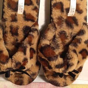 Laundry by Shelli Segal Leopard Print Furry Bedroom Slippers Sz 8