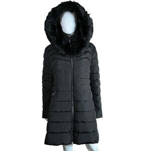 This black beauty is designed to keep you cozy and chic, no matter the weather. Crafted with quality and attention to detail, this long down jacket measures approximately 32 inches from shoulder to hem, ensuring full coverage and warmth. The detachable faux fur hood strip adds a luxurious touch, allowing you to customize your look for any occasion.Featuring a convenient front zipper closure, this jacket is easy to put on and take off, making it perfect for those on-the-go moments. The shell is made of 100% polyester, ensuring durability and water resistance. The lining, also made of 100% polyester, enhances comfort and breathability. The faux fur trim adds an extra touch of sophistication, with the pile crafted from a luxurious blend of 76% acrylic and 24% modacrylic. Rest assured, this jacket is machine washable - simply toss it in the washing machine on a cold cycle for a quick and effortless clean. Imported with pride, this Laundry by Shelli Segal Long Down Jacket embodies the brand's commitment to quality and style. Ideal for everyday wear or special occasions, this jacket will keep you warm and fashionable all season long. Elevate your outerwear collection with the Laundry by Shelli Segal Long Down Jacket - order yours today and experience the perfect blend of comfort, style, and functionality.