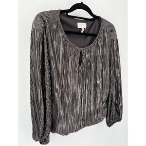 Laundry by Shelli Segal Metallic Crinkle Elastic Waist Blouse Lined Size Medium
