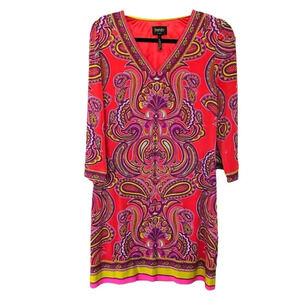 Laundry by Shelli Segal Mod Retro Paisley 70's Go Go V-Neck Dress Size Small