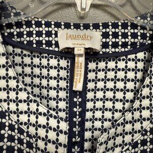 Laundry by Shelli Segal Navy and White Inkblot Patterned Open-Front Jacket Sz 12; Polyester