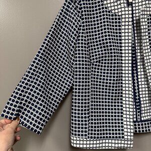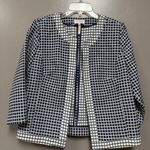 Laundry by Shelli Segal Navy and White Inkblot Patterned Open-Front Jacket Sz 12