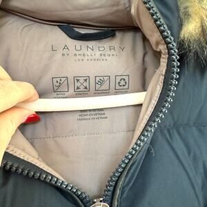 Laundry by Shelli Segal Puffer Coat Navy Faux Fur Hood Women's M Water Resistant