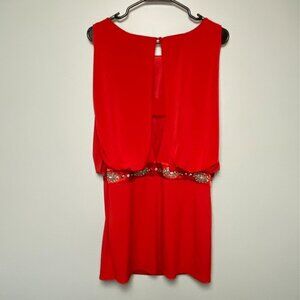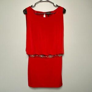 Laundry by Shelli Segal Red Retro Cocktail Dress w/ Rhinestone Waist Size 6
