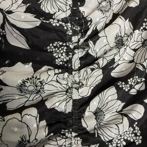 Laundry by Shelli Segal Los Angeles Ruched Mesh Top Blouse Women XL Black Rose Floral Marshmallow Flora Boho Cottagecore Flattering Sheer Lined Long Sleeve Modest