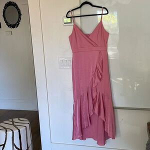 Laundry by Shelli Segal Ruffled Satin Dress In Rose Pink Size 14 NWT