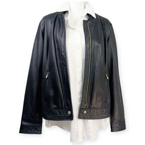 Laundry by Shelli Segal Genuine Leather Jacket Gold Trim Buttery Soft SZ XL