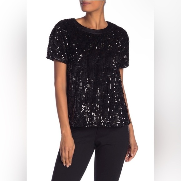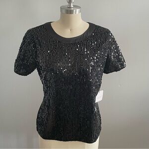 Laundry by Shelli Segal Sequin Black Short Sleeve Top- Size Small- NWT
