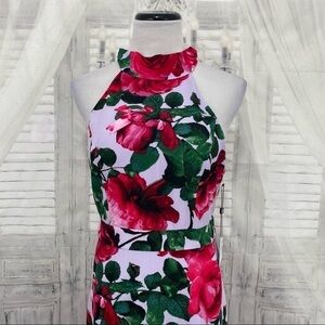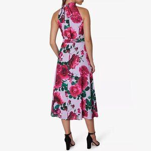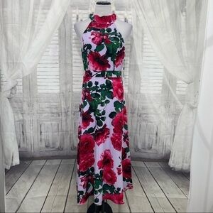 Laundry by Shelli Segal Size 8 Purple Red Floral Halter Midi Dress Fit & Flare