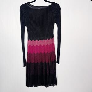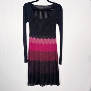 Laundry by Shelli Segal Small S Black Pink Striped Knit Long Sleeve Dress Scoop