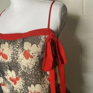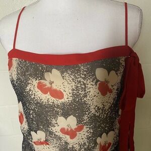 Laundry by Shelli Segal Sz 10 silk Chiffon Floral Red MIDI Dress Cinch Waist