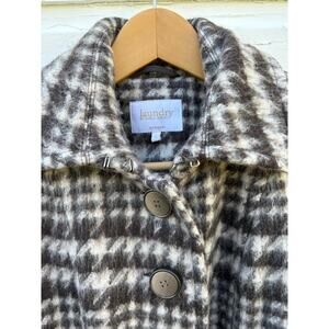 Laundry by Shelli Segal Trench Coat Sz 4 Houndstooth Check Tweed Preppy Business
