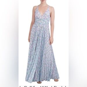 Laundry by Shelli Segal V Neck Floral pleated slip Maxi Dress size 4 new
