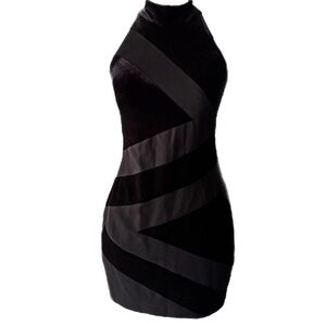 Laundry by Shelli Segal Vintage 90s Black Velvet Mini Geometric Halter Dress