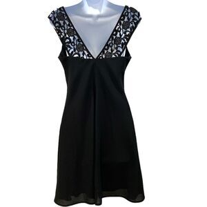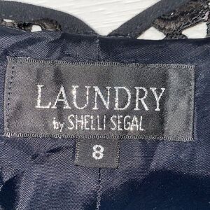 Laundry by Shelli Segal Vintage Floral Lace Detail Black Dress Size 8