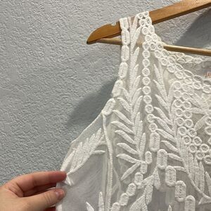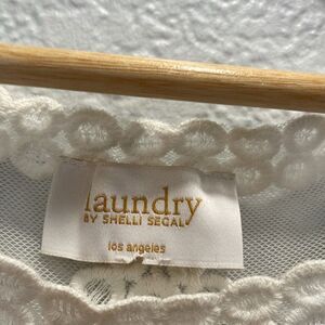 Laundry by Shelli Segal White Embroidered Lace Sheer Overlay Tank Top Size Small