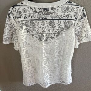 Laundry by Shelli Segal White Floral Lace Sheer Top Size M EUC