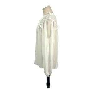 Laundry by Shelli Segal White Smocked Tie Neck Blouse Size Small; From Nordstrom; With its smocked neckline, blouson sleeves, and elasticized cuffs, this blouse exudes a chic and feminine vibe.