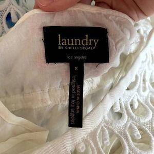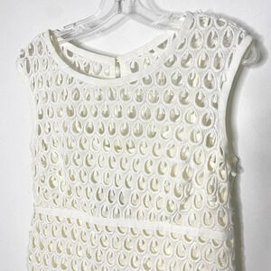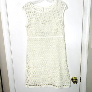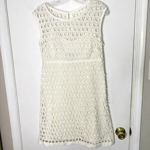 Laundry by Shelli Segal White Teardrop Crochet Overlay Cap Sleeve Shift Dress