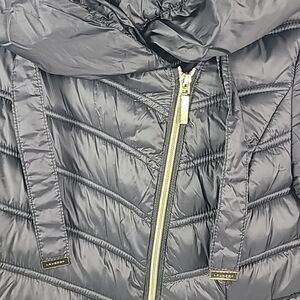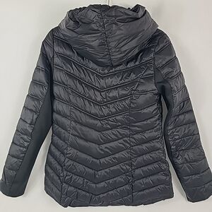 Laundry by Shelli Segal Women's Black Puffer Jacket Coat Hooded Sz S. Pit to pit 18", length 25"