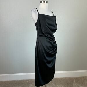 Laundry by Shelli Segal Women's Cocktail Dress Size 6 Black Satin Midi Sheath