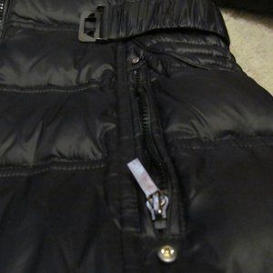 Puffer Long Jacket with detachable hood and zip pockets. 33" long from back neck seam to bottom. Wore once. Like new condition!