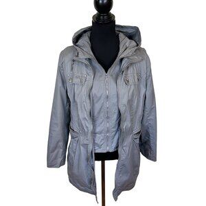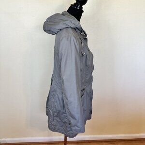 Laundry by Shelli Segal Womens Gray Zip Up Raincoat Medium Hooded Pockets Jacket