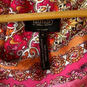 This Laundry by Shelli Segal Women's Pink Sheath Dress in size 8 features a vibrant multicolor print, 3/4 sleeves, and a round neckline with a zip closure. The knee-length dress is made of polyester and is lined for added comfort. Ideal for occasions like weddings, parties, or cocktails, this stylish and versatile dress is a perfect choice for any season. Made in Vietnam, this sheath dress is a fashionable and high-quality option for women looking to make a statement.