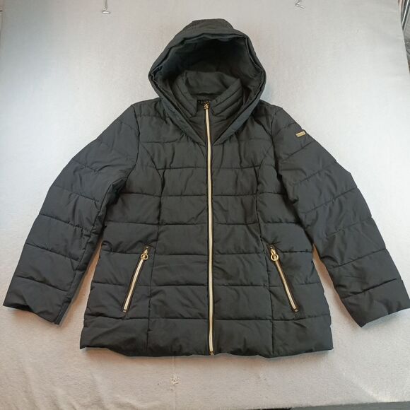 Laundry by Shelli Segal Womens Puffer Coat Jacket Size XL Black Zip w/ Hood