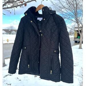 Laundry by Shelli Segal Women’s Quilted Winter Jacket With Hood Size Large Black